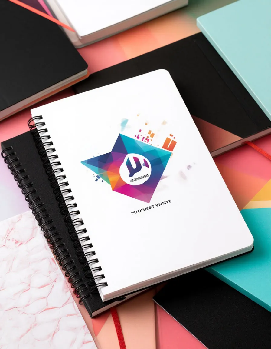 Для записей на встречах или творческих идей. Твердая обложка, качественная бумага и логотип компании на титуле.